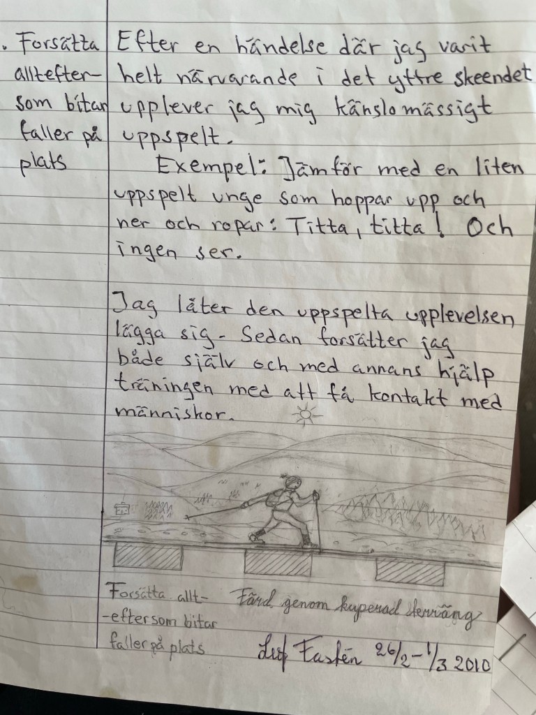 Ner på marken och lek! Inom alkemin betonas betydelsen av ” imagnitation”, då adepten gör sig redo att gå in i det alkemiska rummet. Med inlevelse, leva in, göra verkligt, ingen fantasi kort sagt- ner på marken och lek- äldsta ritualen. Ursprunget. Då hade vi direkt kontakt med gudomlig vishet. Lao Zi :” Den okarvade trästocken, som ännu inte skurits ut till redskap eller prydnadsföremål framstår som en symbol för detta stadium. Innan ” de tio tusen tingen ” blev till. Jaga ursprungsupplevelsen med äldsta ritualen. Ner på marken och lek! Tao 14- ”Vad jag inte kan se när jag betraktar det, det kallar Det osynliga. Vad jag inte kan höra när jag lyssnar till det, det kallar jag Det ohörbara. Vad jag inte kan fatta när jag trevar efter det, det kallar jag Det ofattbara. Dessa tre kan inte definieras. Därför blandas de samman och uppgår i Enheten. Enheten är sådan: dess ovansida är inte ljus, dess undersida är inte mörk, ändlös är den och utan namn; den sällar sig till tingen som icke är. Den kallas Formen utan form, bilden av Intet. Den kallas Det diffusa. Jag möter den men kan inte se dess huvud. Jag följer den men kan inte se dess rygg. Genom att hålla fast vid forntidens Tao kan fursten reglera nuets företeelser. Att därigenom lära känna begynnelsen, det kallas att följa Taos rättesnöre.” Kartan blev till här verkar det som. Treva, Söka, Famla- Bana väg-Orientera sig- Rita ner- Forsätta allteftersom bitar faller på plats.